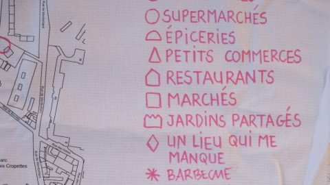 Au sein de ce projet de recherche-action, en plus de prendre part “en sociologue” à l’étude ethnographique, je mets en place des ateliers de cartographie collective et narrative avec les usager·e·s des associations que nous rencontrons, ainsi qu’avec les 30 participant·e·s de l’étude. Prenant au sérieux les connaissances qui se fabriquent dans la trame du quotidien, il s’agit ici de s’atteler à construire ensemble une représentation du territoire à partir des pratiques spatiales, des usages et des attachements qui fondent le vécu alimentaire des personnes concernées.